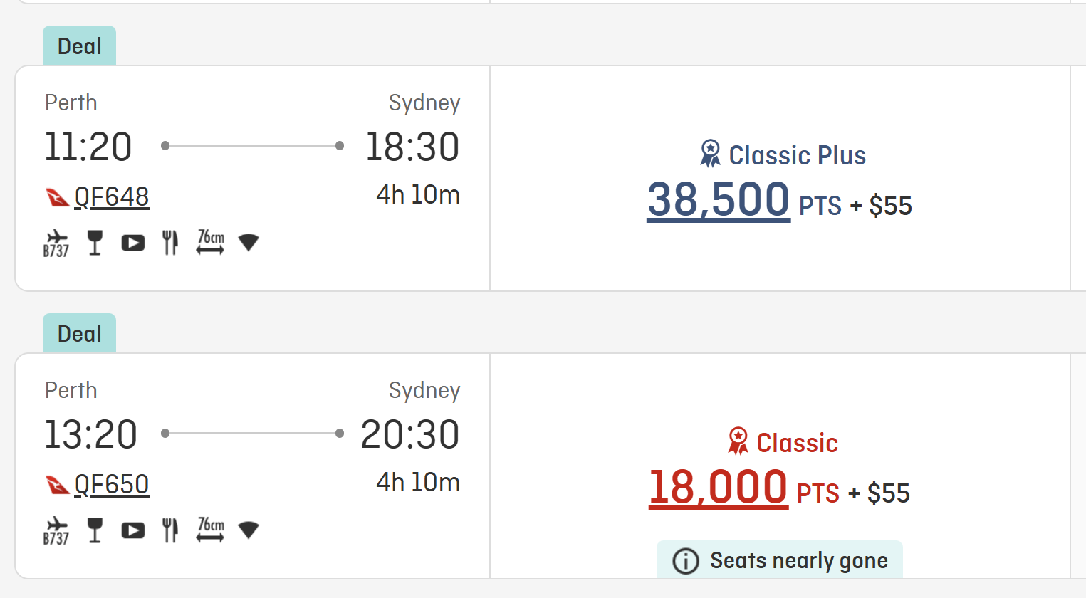 Classic Plus seats are only available on Qantas flights, not partners.