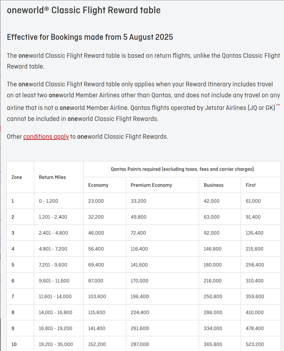 you can only fly with oneworld member airlines, which does not include some Qantas partners like Emirates – so be careful when looking at search results on Qantas’ site